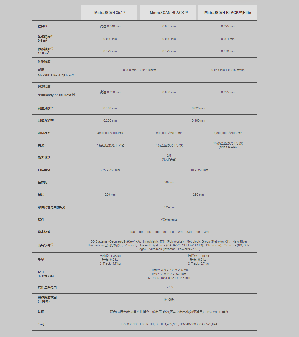MetraSCAN 3D 光學 CMM 3D 掃描儀的測量范圍可以擴展,測量速度快,且對復雜材料的數據采集能力令人驚嘆,是市場上十分全面的計量級 3D 掃描儀。